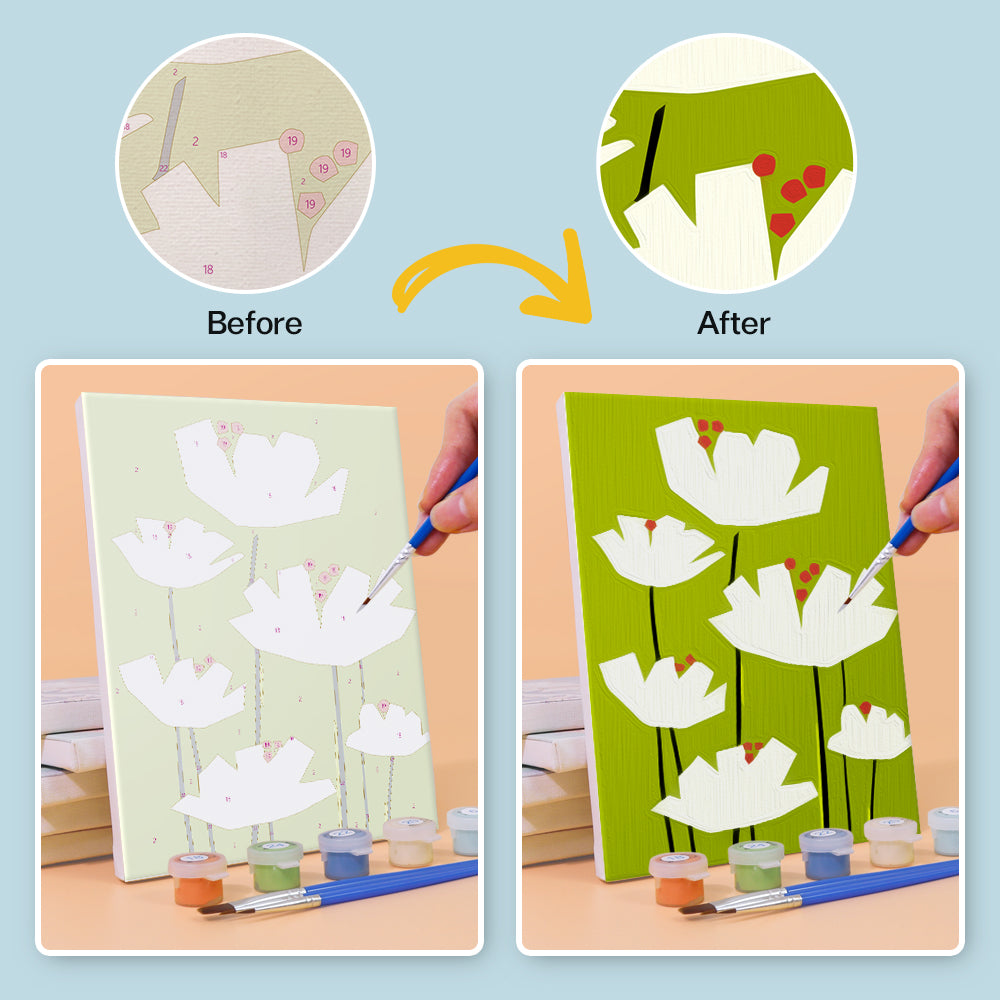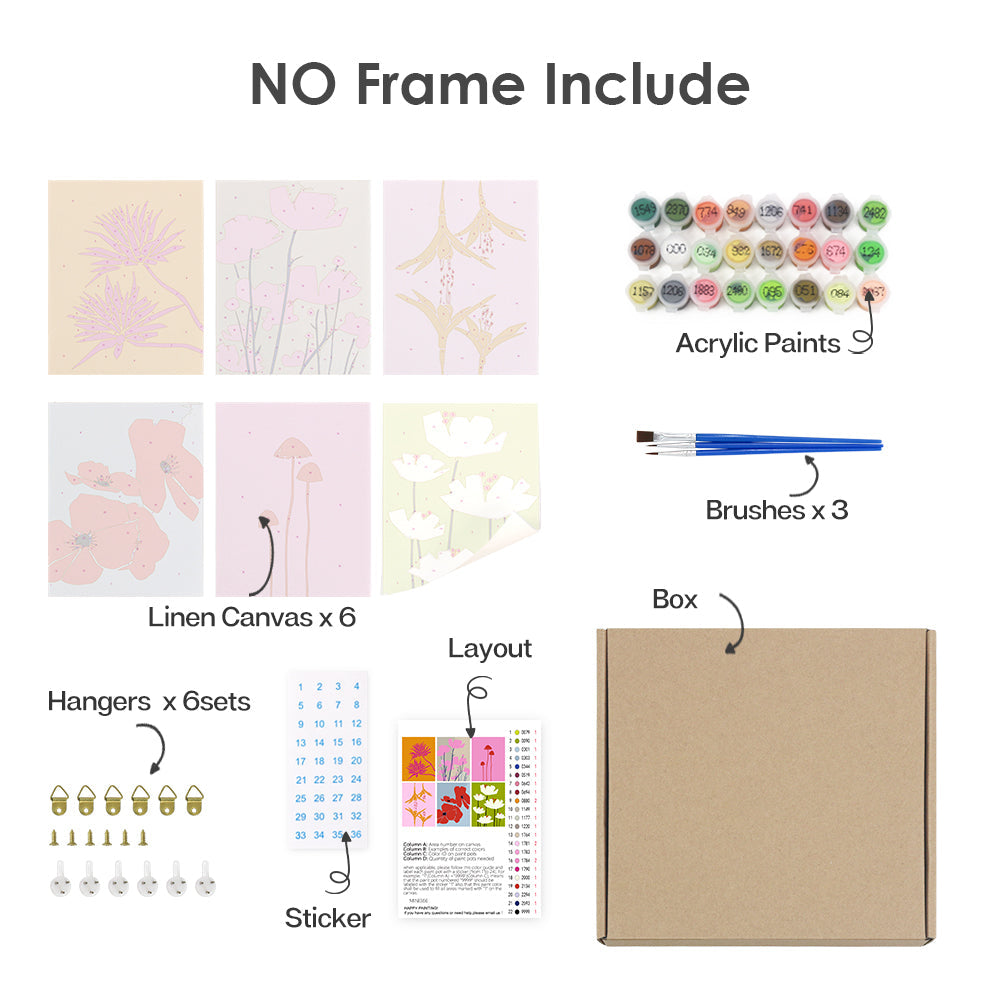 Paljasta kaikki olennaiset asiat siististi pakattuina Paint by Numbers -pakkaukseemme. Kun jokainen komponentti on merkitty ja käyttövalmis, voit keskittyä yksinomaan taiteelliseen matkaasi. Eloisista maaleista tarkkuussiveltimiin olemme varmistaneet, että mikään ei ole sinun ja kankaasi välissä. Tämä sarja sopii sekä aloittelijoille että kokeneille taiteilijoille, ja se tarjoaa puhtaan, keskeytymättömän maalauskokemuksen.