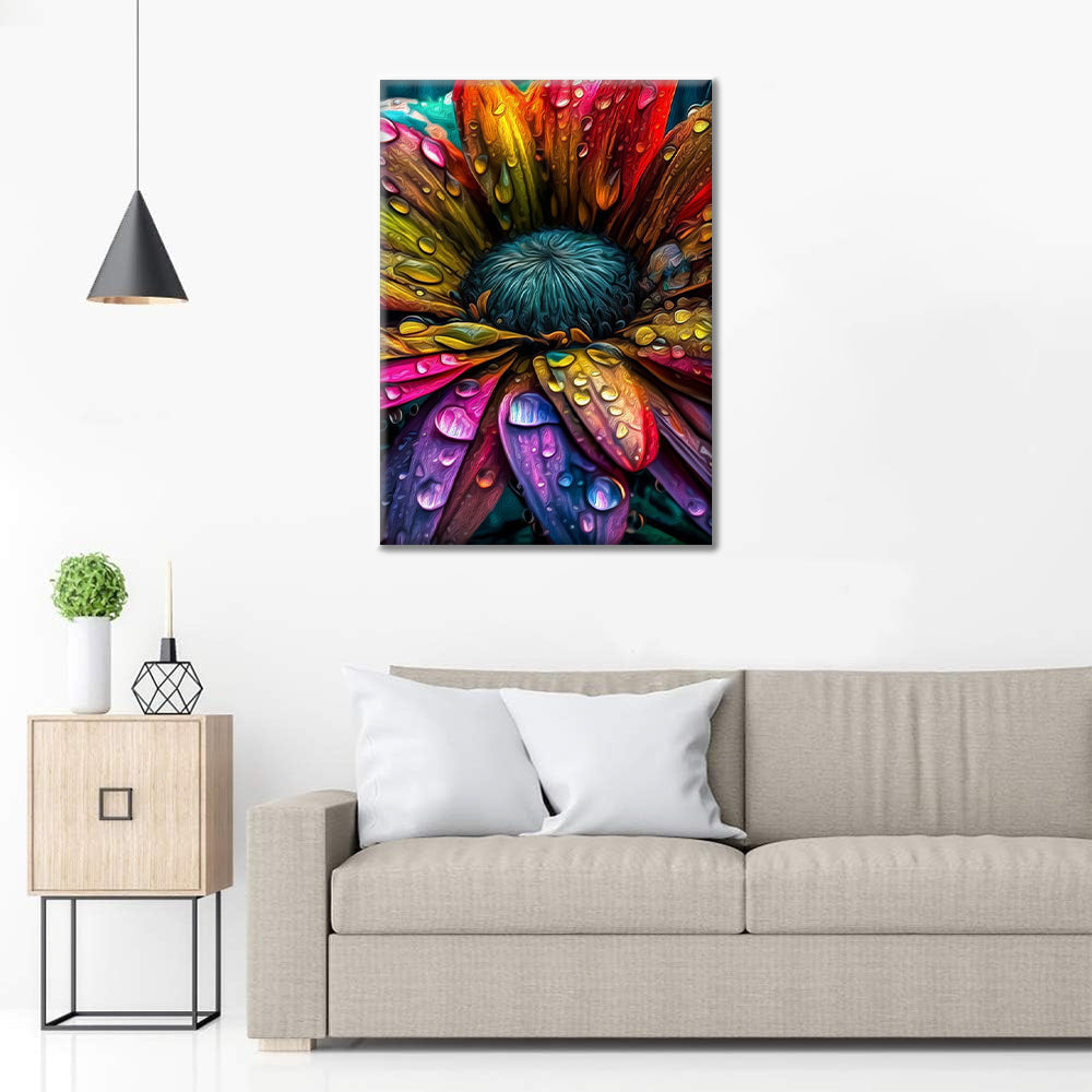 Kirkkaanvärinen kukka sadepisaroilla - Maalaa numeroilla