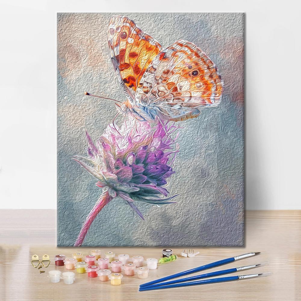 Perhonen kastepisaroilla - Maalaa numeroilla