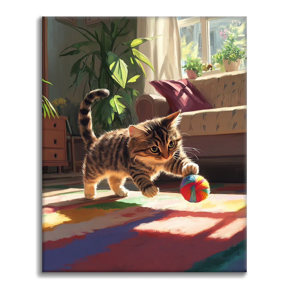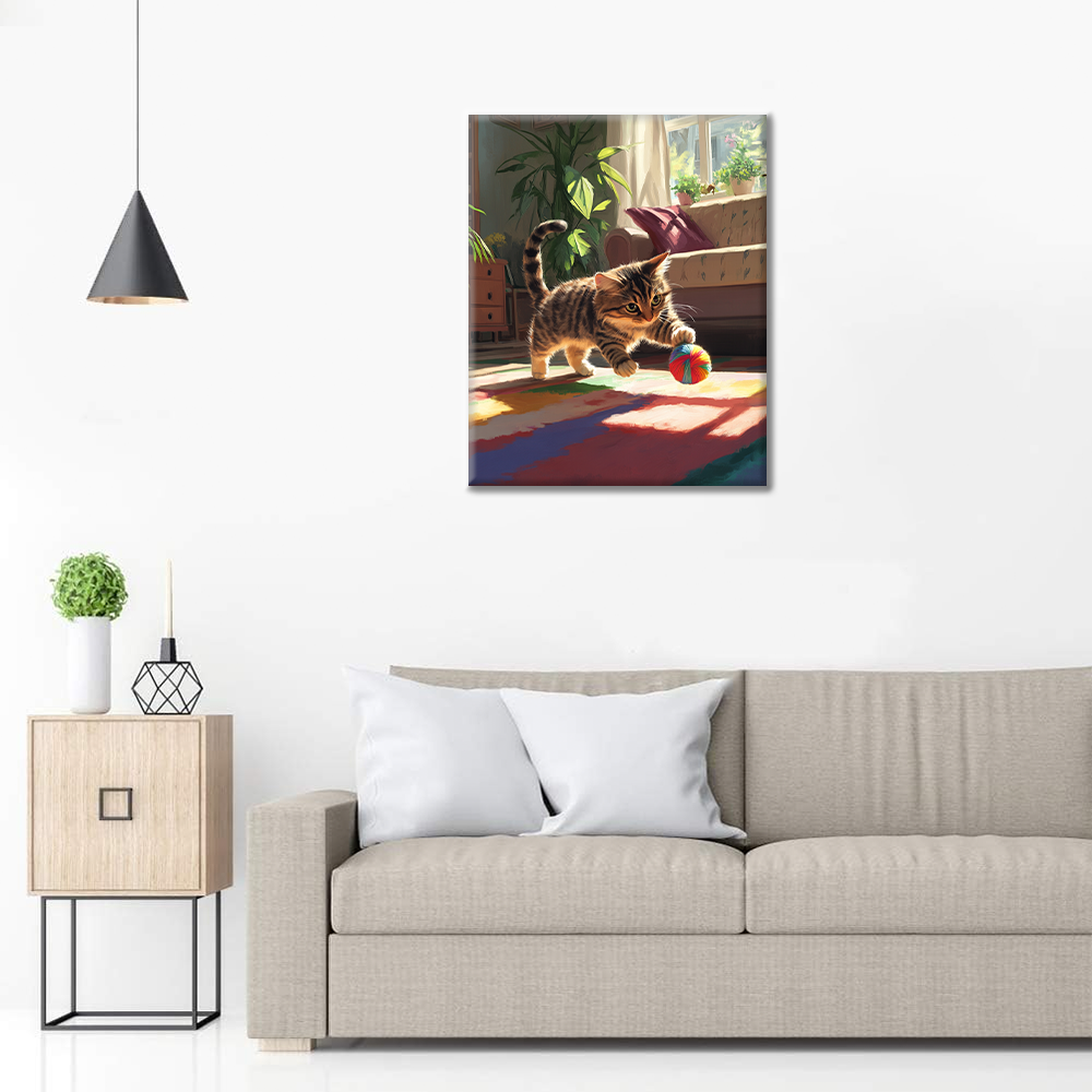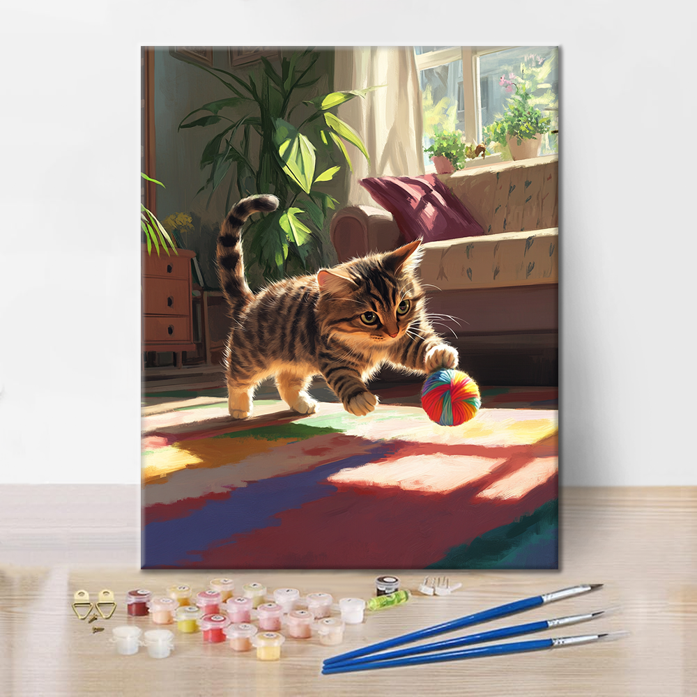 Kissa ja värikäs pallo - Maalaa numeroilla