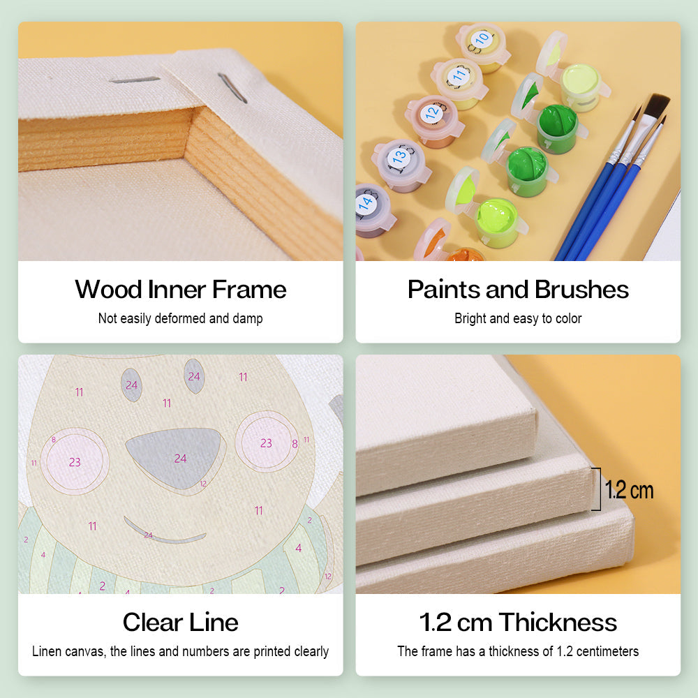 Paljasta kaikki olennaiset asiat siististi pakattuina Paint by Numbers -pakkaukseemme. Kun jokainen komponentti on merkitty ja käyttövalmis, voit keskittyä yksinomaan taiteelliseen matkaasi. Eloisista maaleista tarkkuussiveltimiin olemme varmistaneet, että mikään ei ole sinun ja kankaasi välissä. Tämä sarja sopii sekä aloittelijoille että kokeneille taiteilijoille, ja se tarjoaa puhtaan, keskeytymättömän maalauskokemuksen.