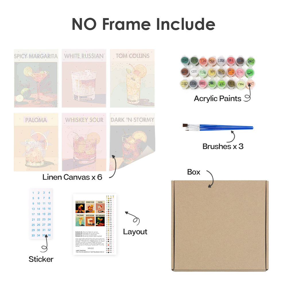 Paljasta kaikki olennaiset asiat siististi pakattuina Paint by Numbers -pakkaukseemme. Kun jokainen komponentti on merkitty ja käyttövalmis, voit keskittyä yksinomaan taiteelliseen matkaasi. Eloisista maaleista tarkkuussiveltimiin olemme varmistaneet, että mikään ei ole sinun ja kankaasi välissä. Tämä sarja sopii sekä aloittelijoille että kokeneille taiteilijoille, ja se tarjoaa puhtaan, keskeytymättömän maalauskokemuksen.
