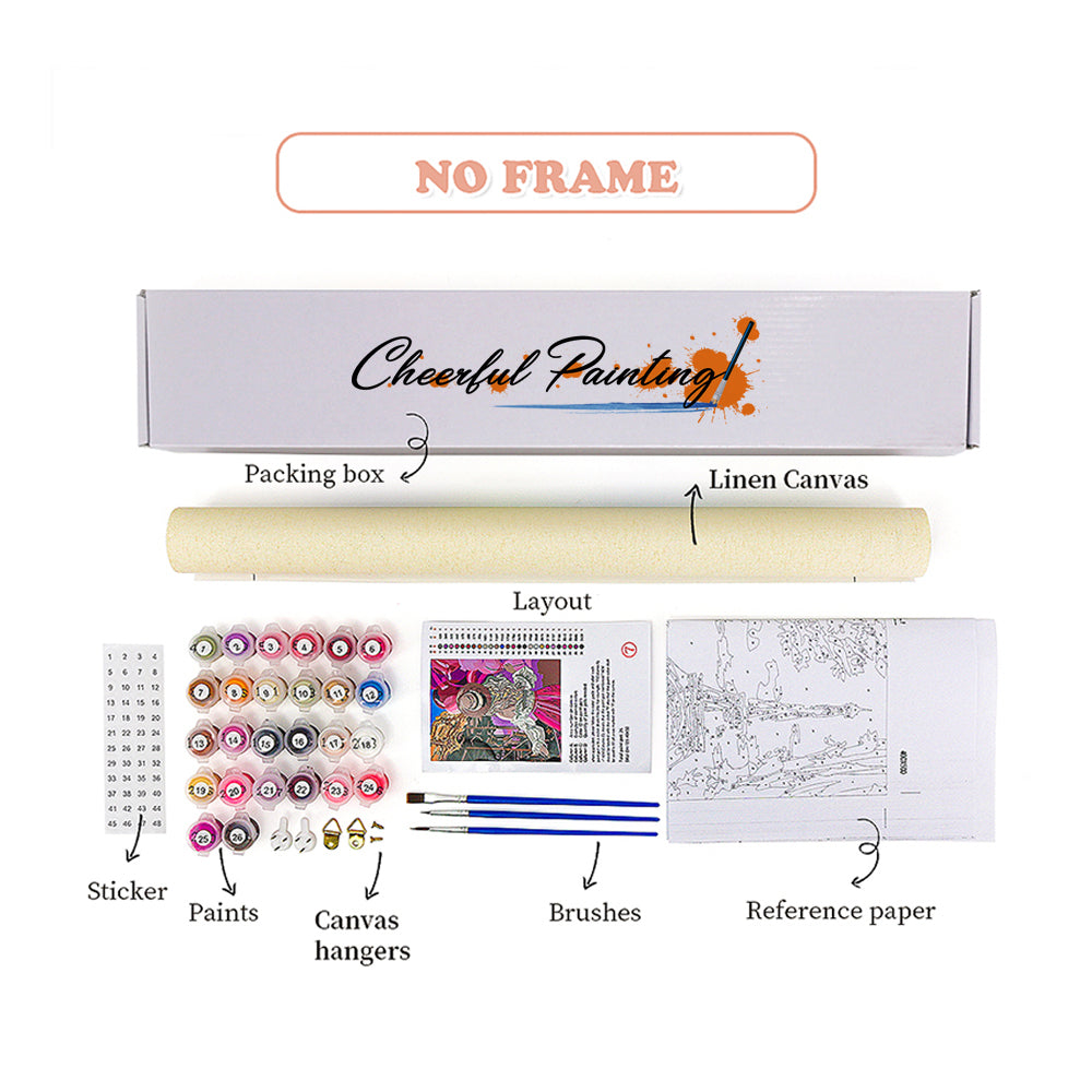 Paljasta kaikki olennaiset asiat siististi pakattuina Paint by Numbers -pakkaukseemme. Kun jokainen komponentti on merkitty ja käyttövalmis, voit keskittyä yksinomaan taiteelliseen matkaasi. Eloisista maaleista tarkkuussiveltimiin olemme varmistaneet, että mikään ei ole sinun ja kankaasi välissä. Tämä sarja sopii sekä aloittelijoille että kokeneille taiteilijoille, ja se tarjoaa puhtaan, keskeytymättömän maalauskokemuksen.