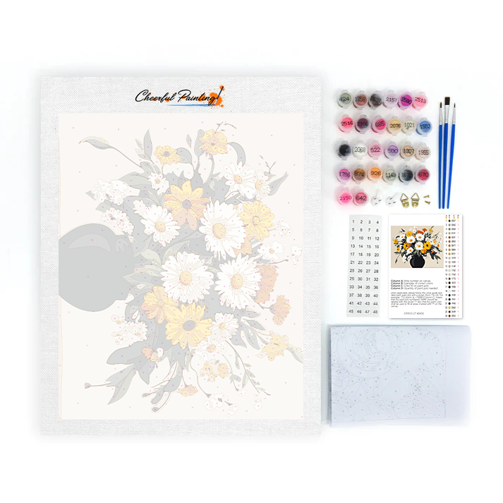 Paljasta kaikki olennaiset asiat siististi pakattuina Paint by Numbers -pakkaukseemme. Kun jokainen komponentti on merkitty ja käyttövalmis, voit keskittyä yksinomaan taiteelliseen matkaasi. Eloisista maaleista tarkkuussiveltimiin olemme varmistaneet, että mikään ei ole sinun ja kankaasi välissä. Tämä sarja sopii sekä aloittelijoille että kokeneille taiteilijoille, ja se tarjoaa puhtaan, keskeytymättömän maalauskokemuksen.