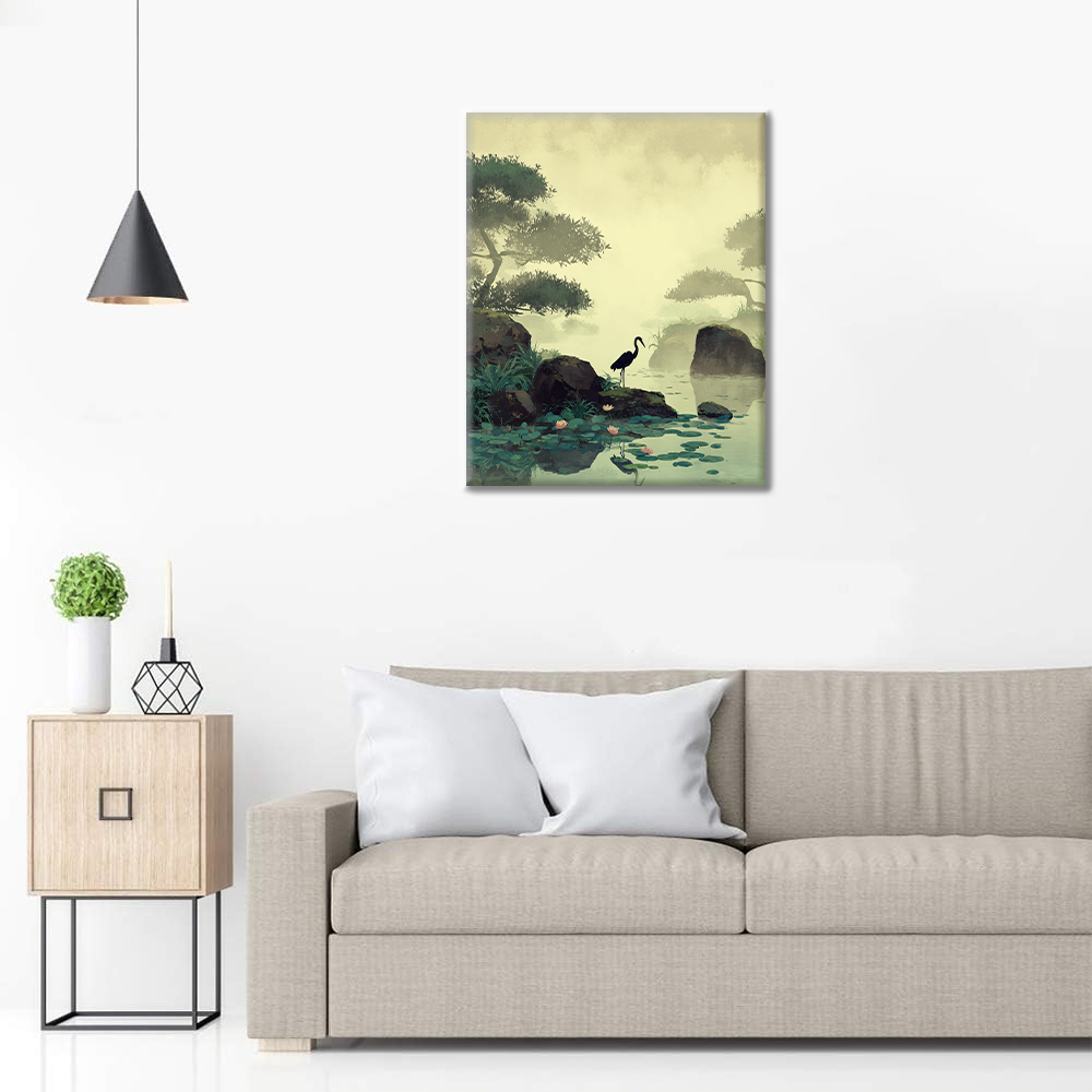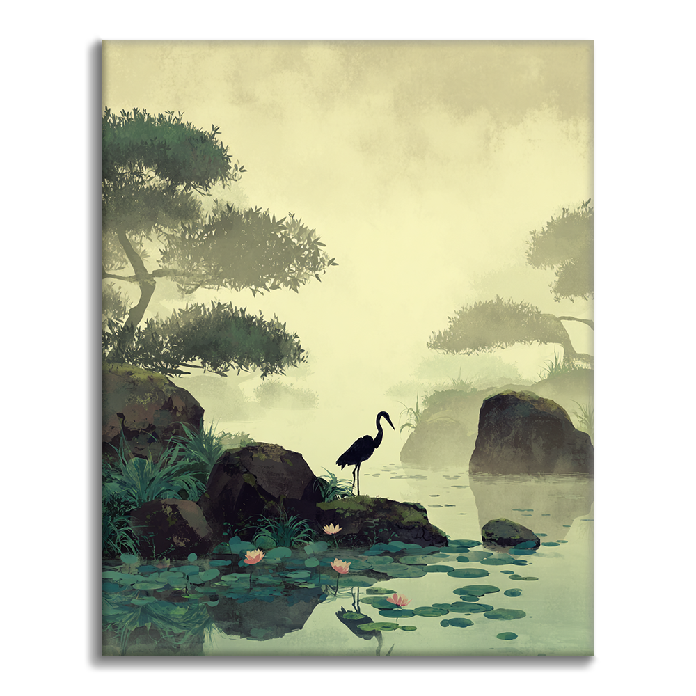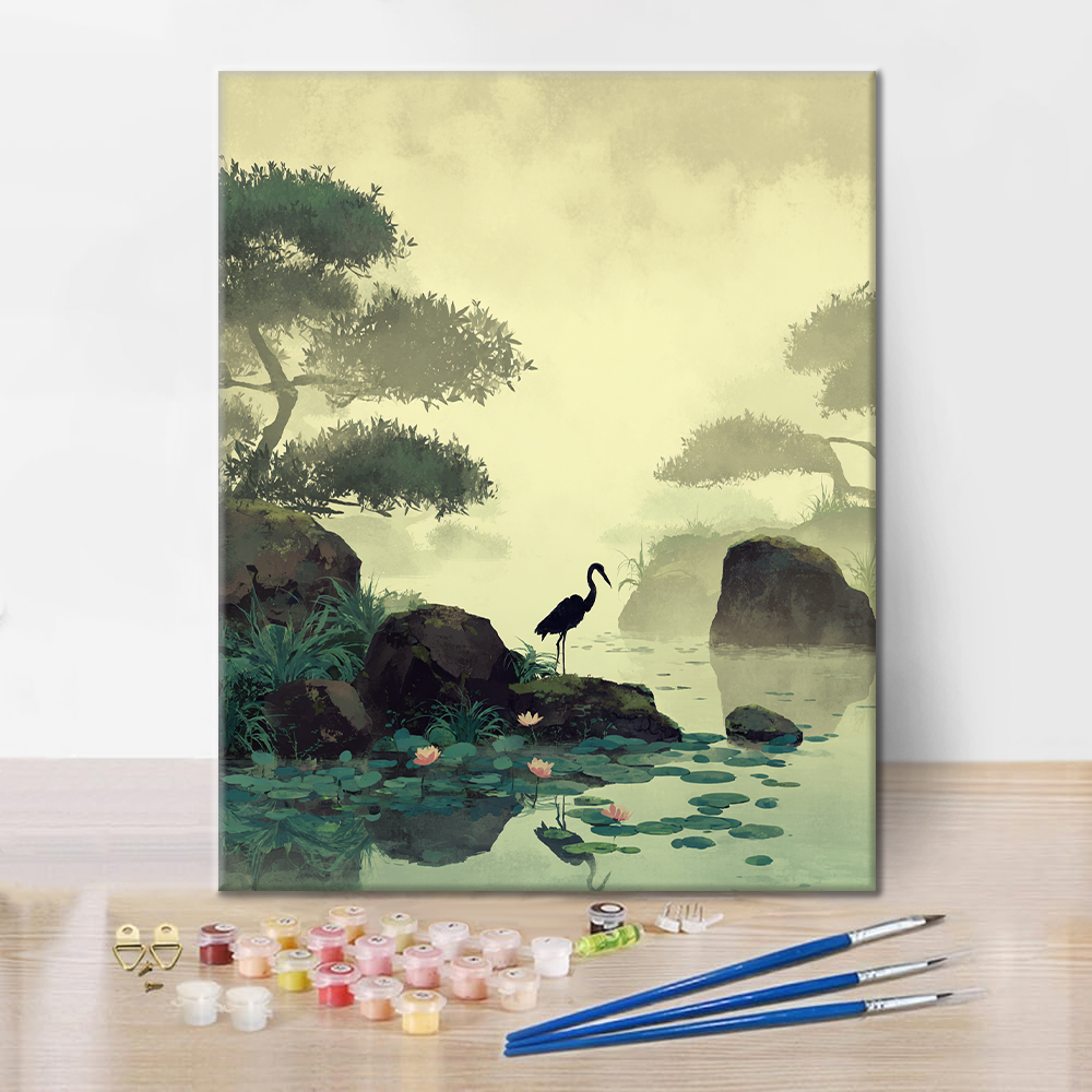 Kurki lootuslammen rannalla - Maalaa numeroilla