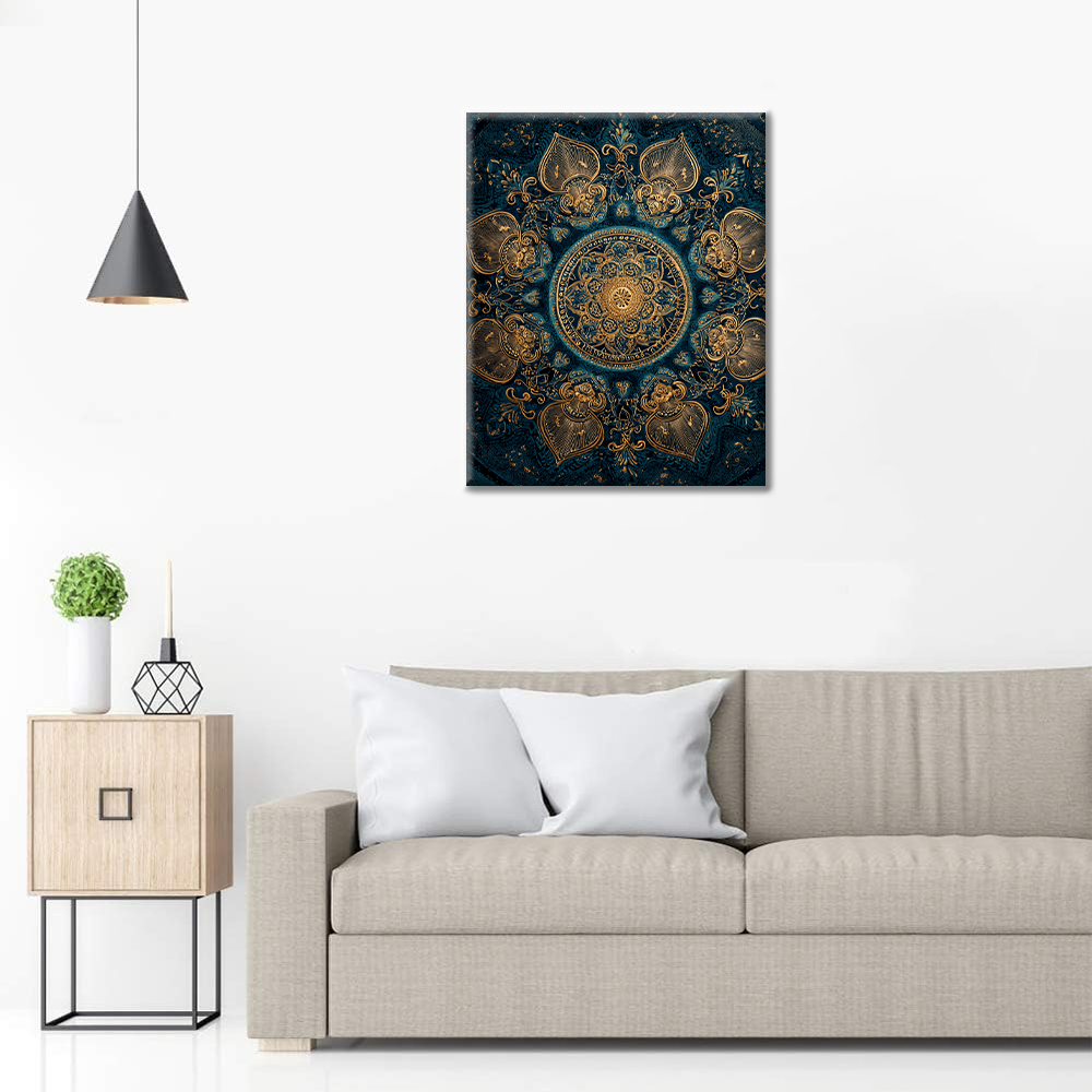 Kultainen lootusmandala - Maalaa numeroiden mukaan