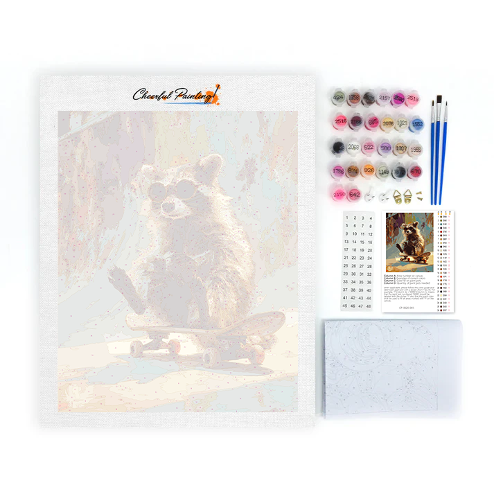 Raccoon-skeittilauta - Maalaa numeroiden mukaan