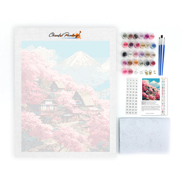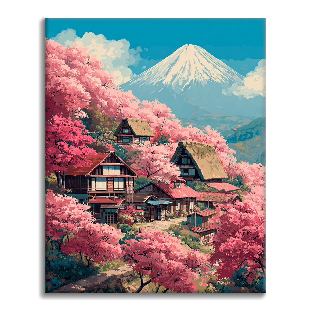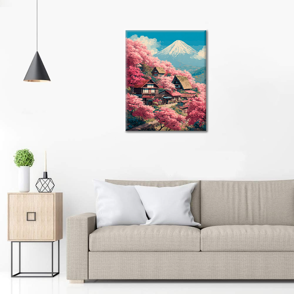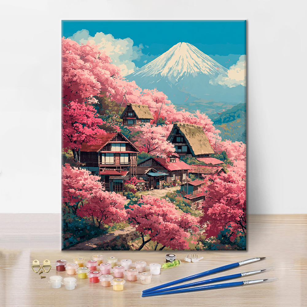 Sakura-huvila Fuji-vuorella - Maalaa numeroilla