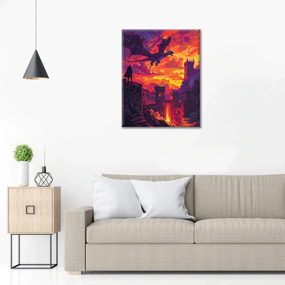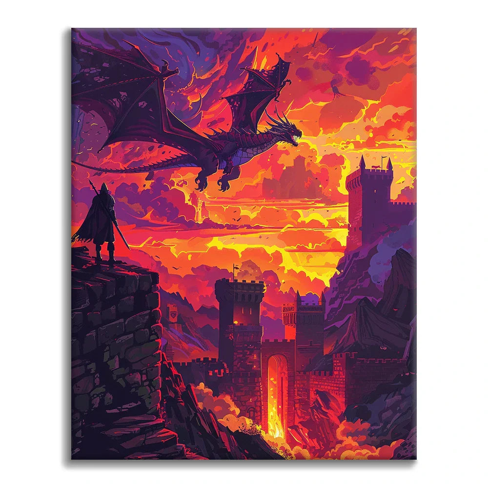 Lohikäärme linnan yllä - Maalaa numeroiden mukaan