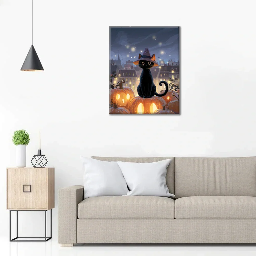 Velhokissa istuu kurpitsalla - Maalaa numeroiden mukaan