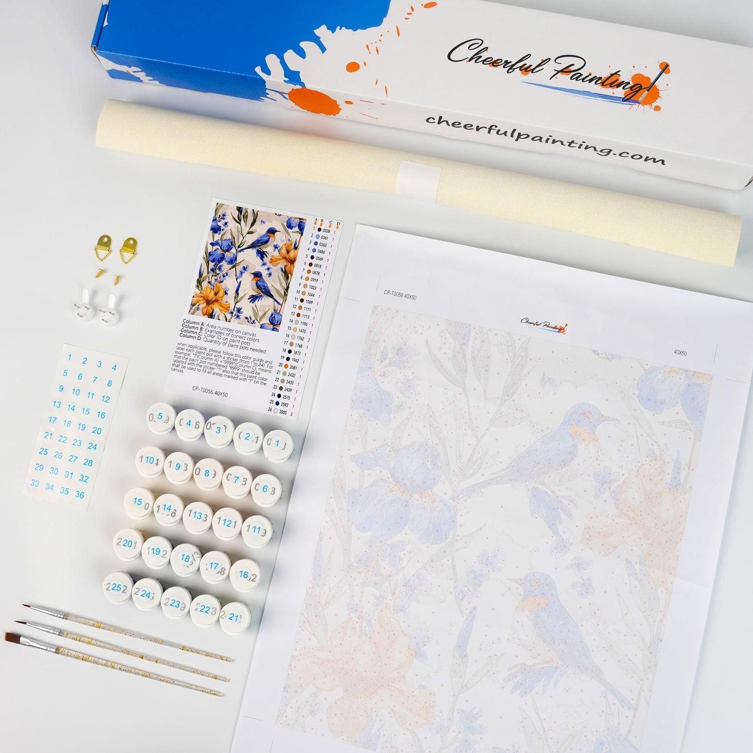 Paljasta kaikki olennaiset asiat siististi pakattuina Paint by Numbers -pakkaukseemme. Kun jokainen komponentti on merkitty ja käyttövalmis, voit keskittyä yksinomaan taiteelliseen matkaasi. Eloisista maaleista tarkkuussiveltimiin olemme varmistaneet, että mikään ei ole sinun ja kankaasi välissä. Tämä sarja sopii sekä aloittelijoille että kokeneille taiteilijoille, ja se tarjoaa puhtaan, keskeytymättömän maalauskokemuksen.