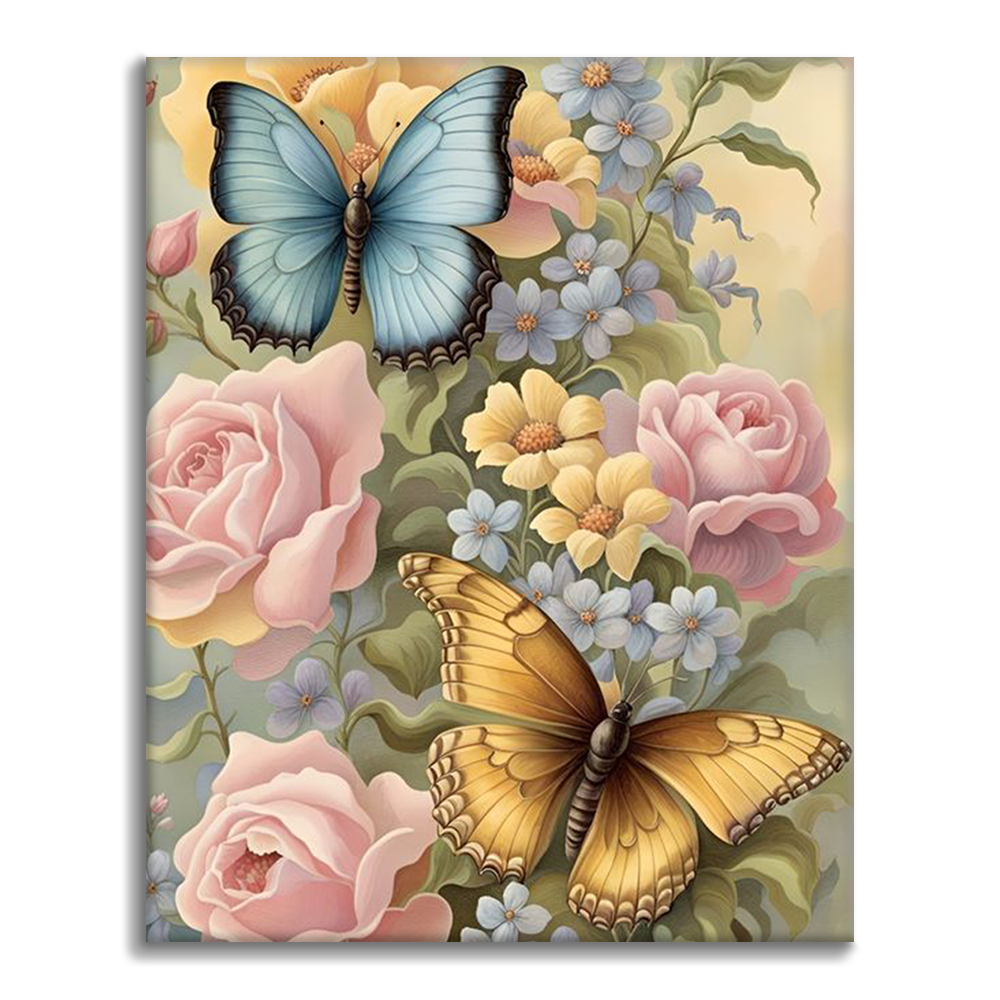Kukat ja perhoset - Maalaa numeroilla