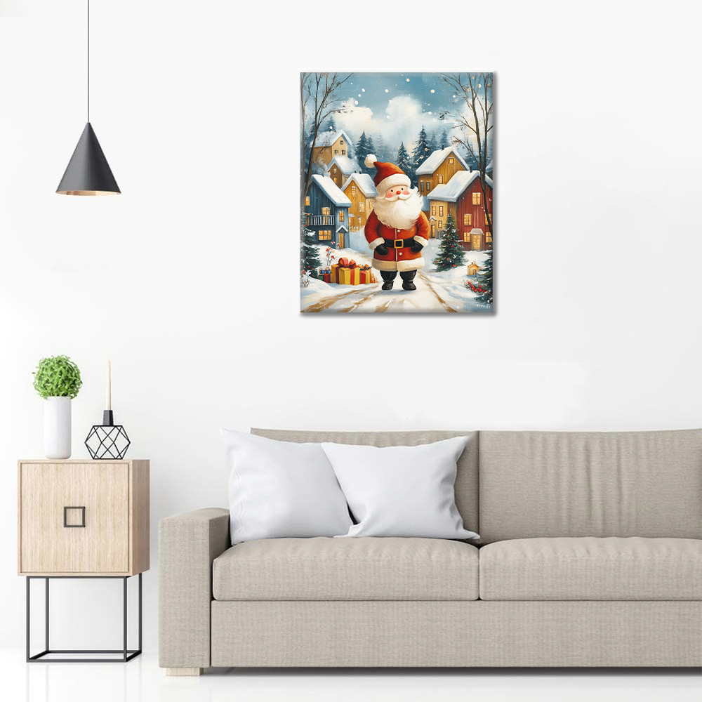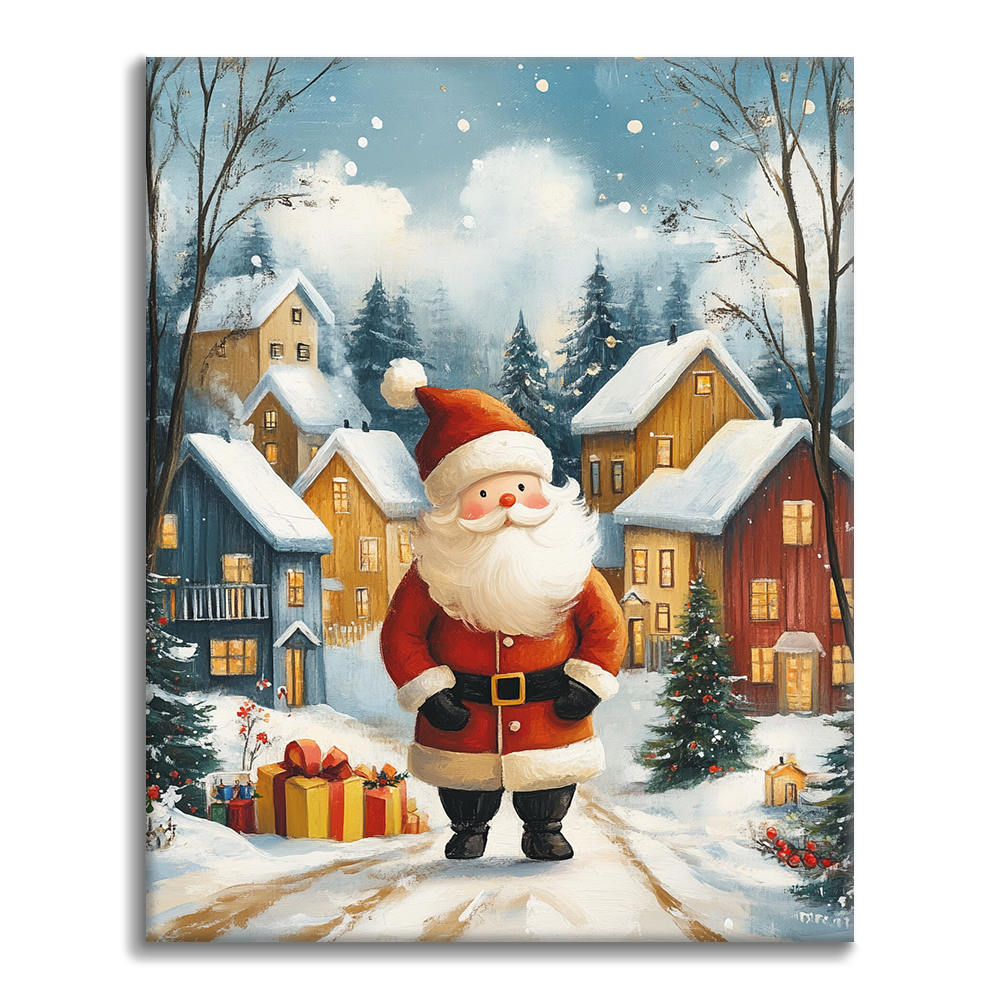 Iloinen joulupukki talvisessa satumaassa - Maalaa numeroilla