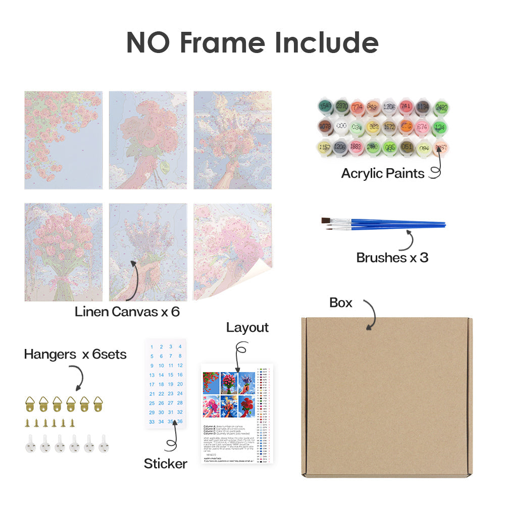 Paljasta kaikki olennaiset asiat siististi pakattuina Paint by Numbers -pakkaukseemme. Kun jokainen komponentti on merkitty ja käyttövalmis, voit keskittyä yksinomaan taiteelliseen matkaasi. Eloisista maaleista tarkkuussiveltimiin olemme varmistaneet, että mikään ei ole sinun ja kankaasi välissä. Tämä sarja sopii sekä aloittelijoille että kokeneille taiteilijoille, ja se tarjoaa puhtaan, keskeytymättömän maalauskokemuksen.