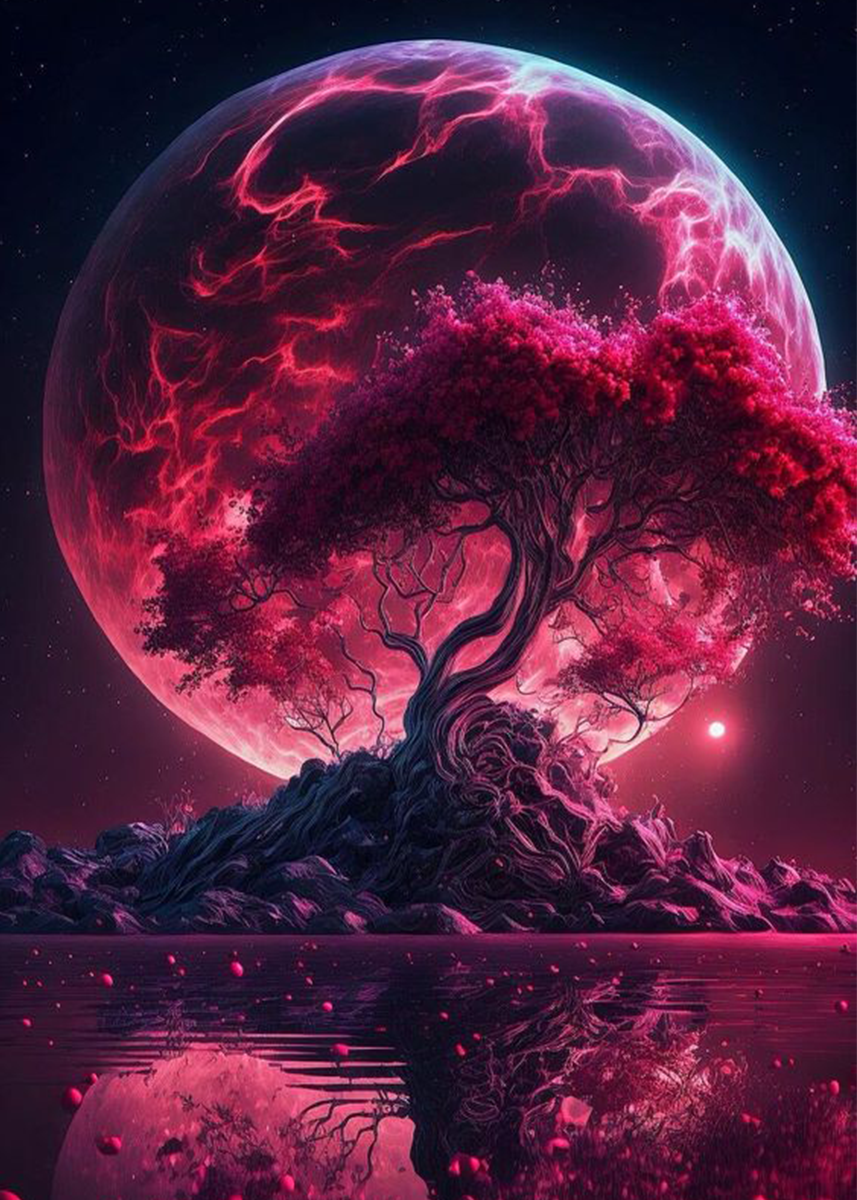 Puut kuunvalon alla - Maalaa numeroilla