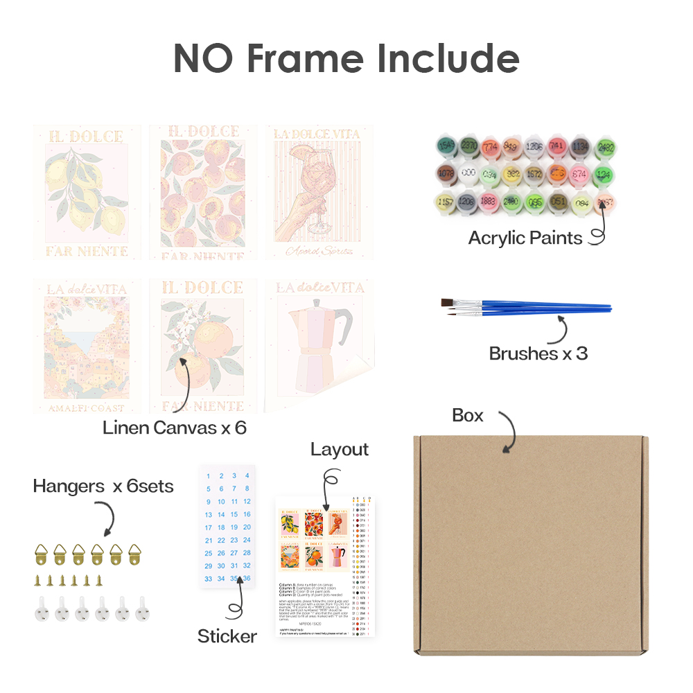 Paljasta kaikki olennaiset asiat siististi pakattuina Paint by Numbers -pakkaukseemme. Kun jokainen komponentti on merkitty ja käyttövalmis, voit keskittyä yksinomaan taiteelliseen matkaasi. Eloisista maaleista tarkkuussiveltimiin olemme varmistaneet, että mikään ei ole sinun ja kankaasi välissä. Tämä sarja sopii sekä aloittelijoille että kokeneille taiteilijoille, ja se tarjoaa puhtaan, keskeytymättömän maalauskokemuksen.