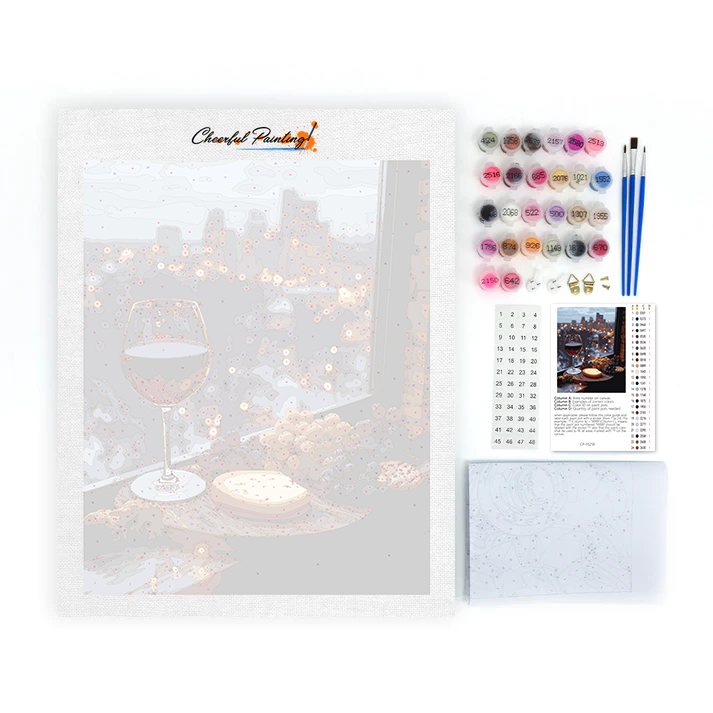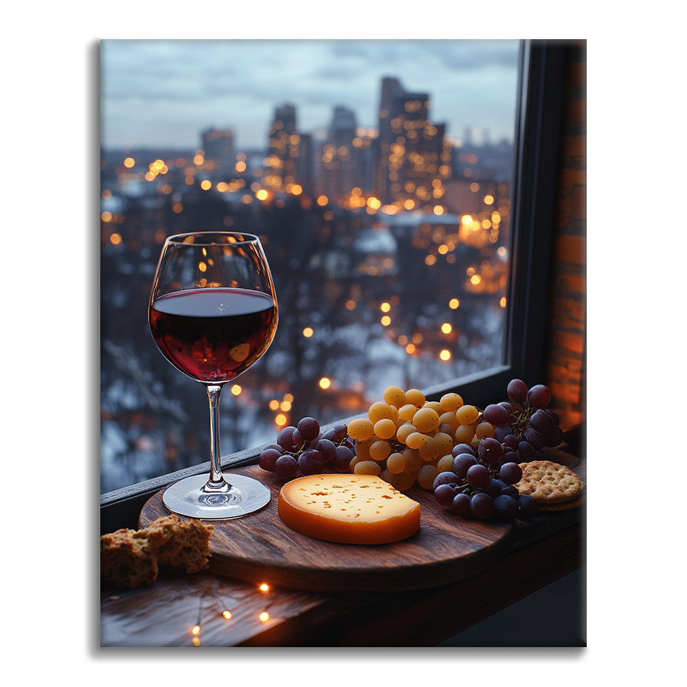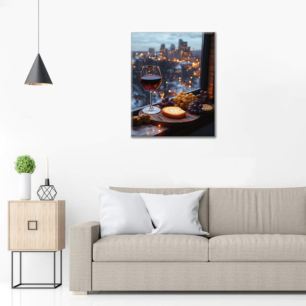 Viini, juusto ja kaupungin valot - Maalaa numeroilla