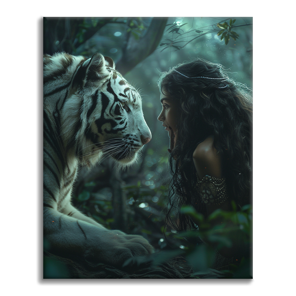 Nainen ja valkoinen tiikeri - Maalaa numeroilla
